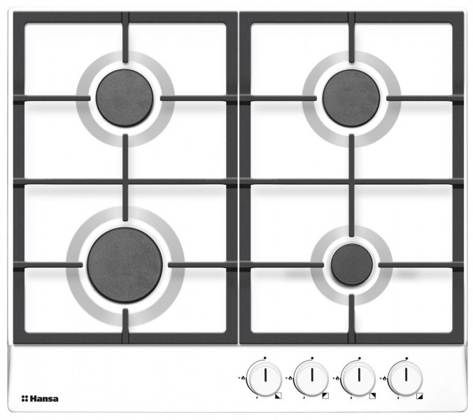 Plita incorporabila Hansa BHGW63050, 4 arzatoare, panou de comanda frontal, supapa de siguranta, autoaprindere integrata in buton, suporturi stabile din fonta, dimensiune 5.2x59x52, culoare alb