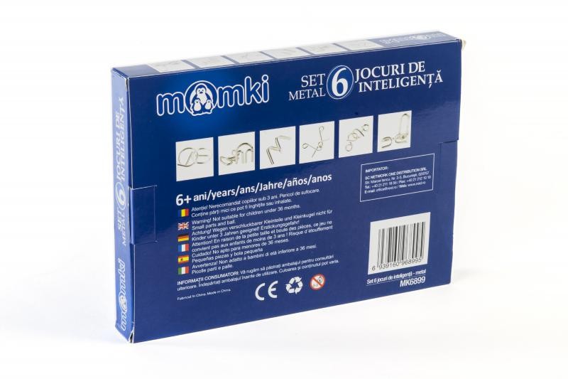 Set 6 jocuri de inteligenta_metal Ce-ți poate da mai multă încredere în abilitățile tale? Jocurile de inteligență sunt ideale. Ele îi stimulează intuiția, atenția, memoria, capacitatea de concentrare și răbdarea. Indiferent de vârsta pe care o ai, Jocurile de inteligență sunt un mod plăcut în care-ți poți petrece timpul liber, iar pentru cei mici un pas pregătitor pentru școală. Nivel de dificultate diferit in functie denumarul de stelute!