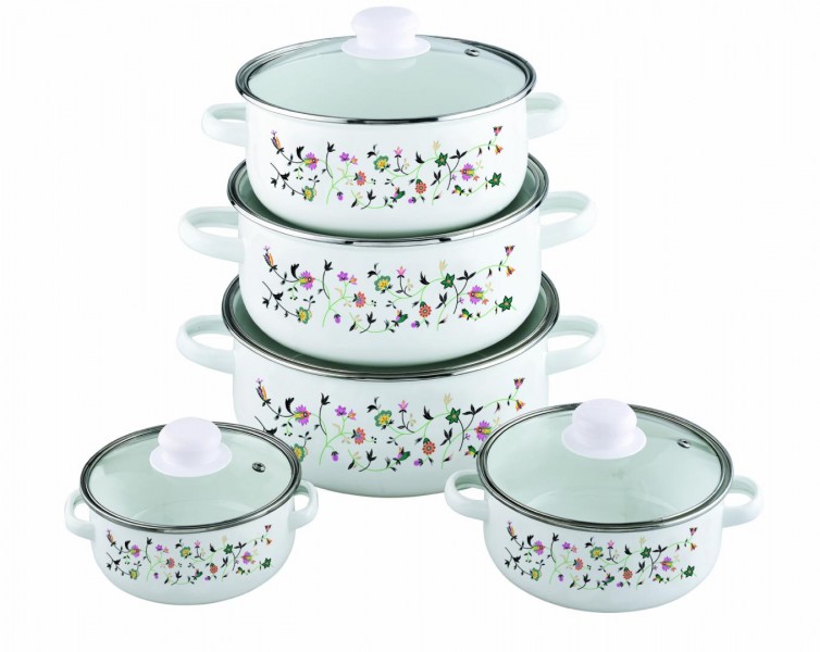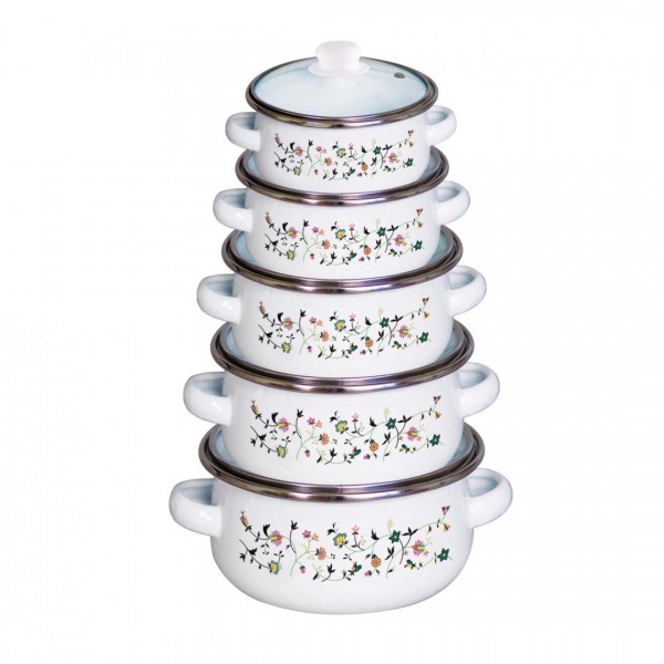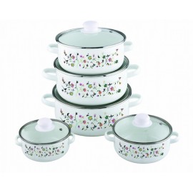 Set oale emailate 10 piese FESTA, model flower ;Cratita 12 cm , 0.5 L +capac; Cratita 14 cm , 0.8 L +capac; Cratita 16 cm ,1 L +capac; Cratita
