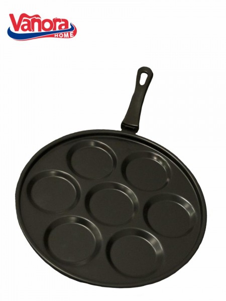 TIGAIE CU 7 COMPARTIMENTE ; material: otel carbon cu acoperire non-stick; grosime :0.6mm; dimensiuni: dia.29.5x H:1.8cm; dimensiune comprtiment: diametru:7cm ;